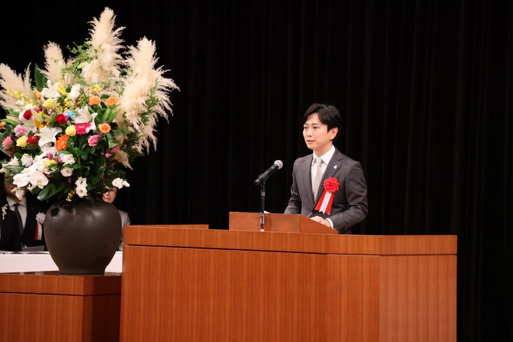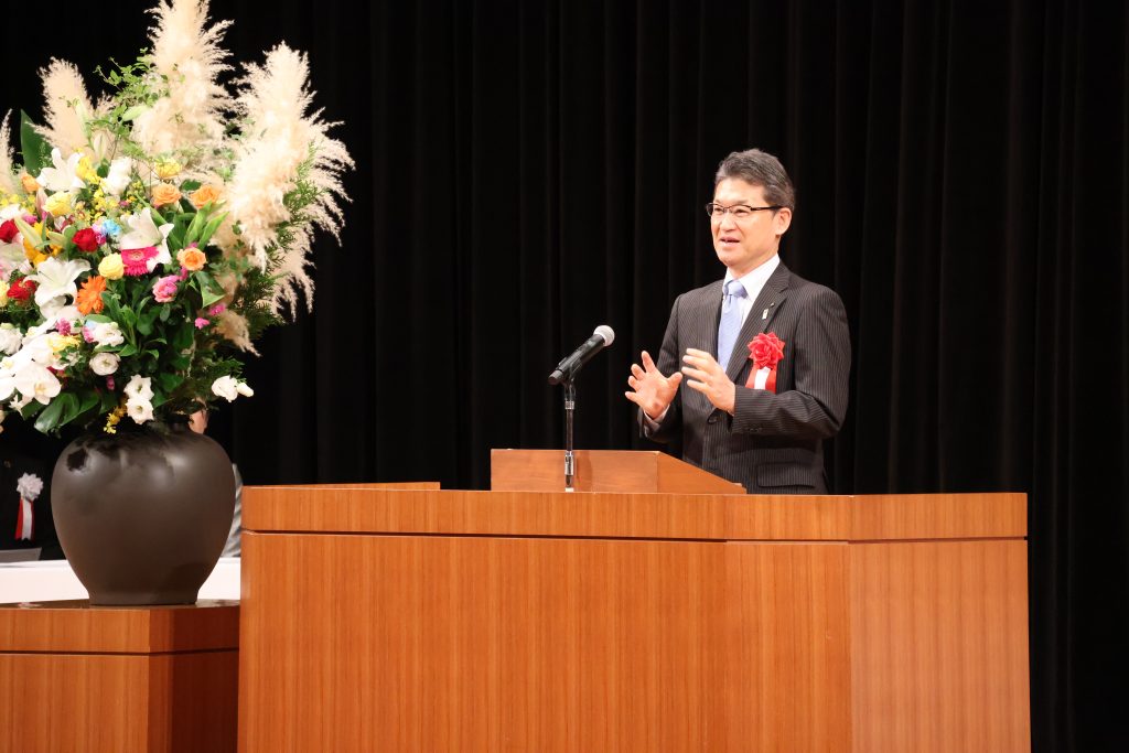 式典には、来賓の方々や旧教職員など多数ご臨席賜り、学長式辞に続き、宮崎県知事 河野俊嗣様、宮崎市長 清山知憲様にご祝辞をいただきました。
