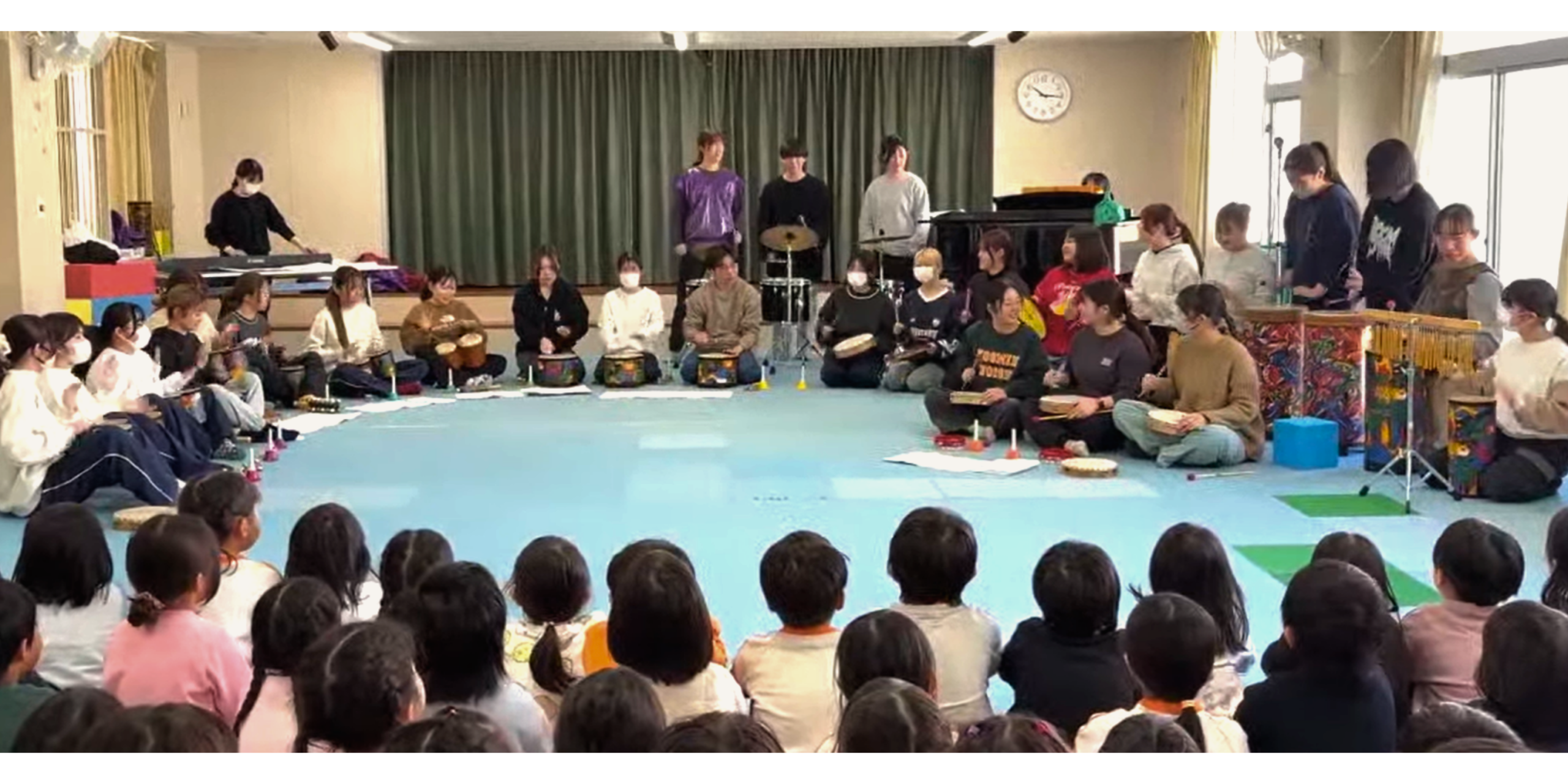 園の子どもたちがホールに観に来てくれて、学生たちも期待に胸はずませ精一杯実践しました。