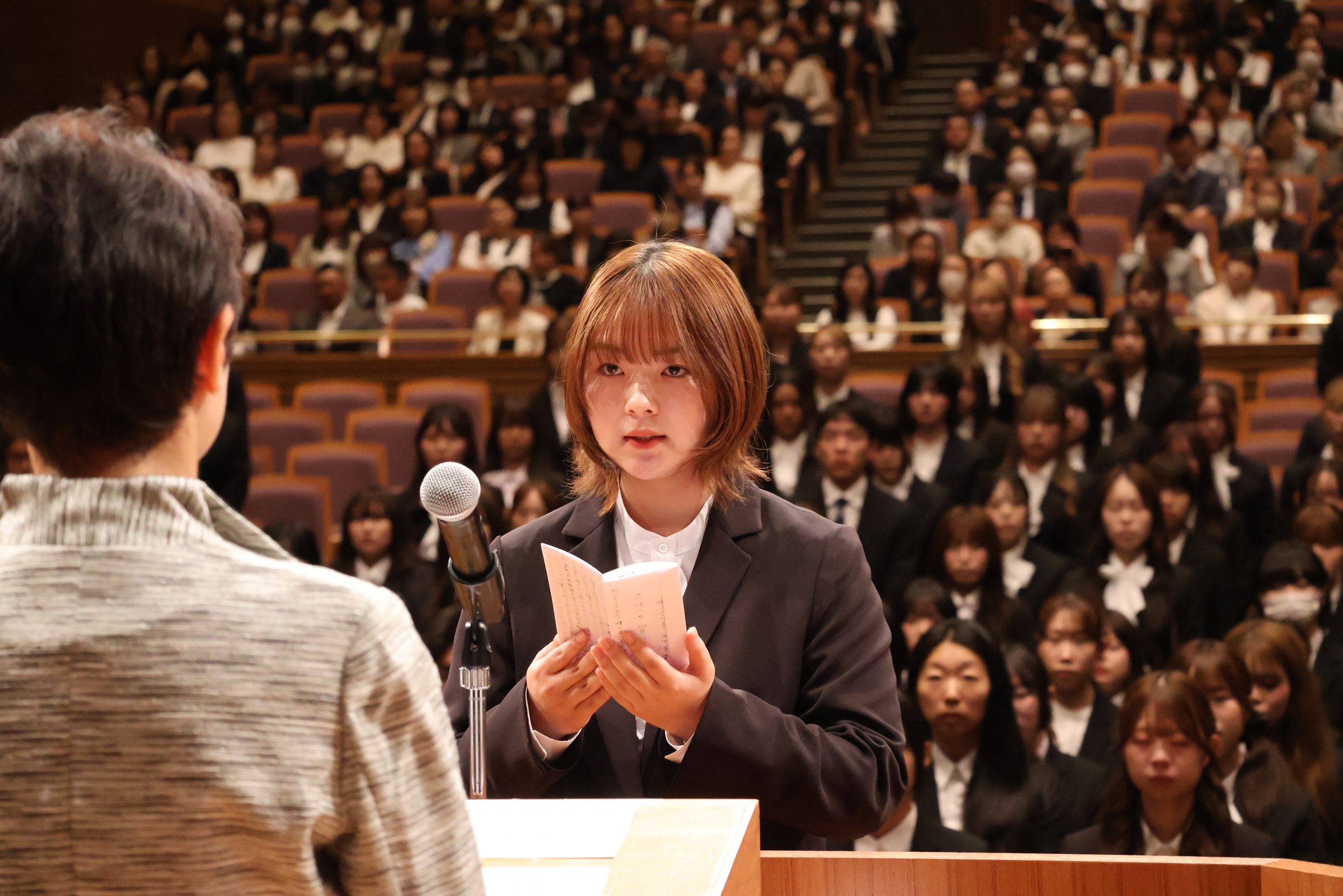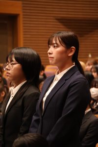 新入生と多くの保護者の前での宣誓に緊張した様子も見受けられましたが、一言一言を大切にしながら、力強く、はっきりとした口調で述べている姿は、これから始まる学生生活の決意と期待が感じられました。