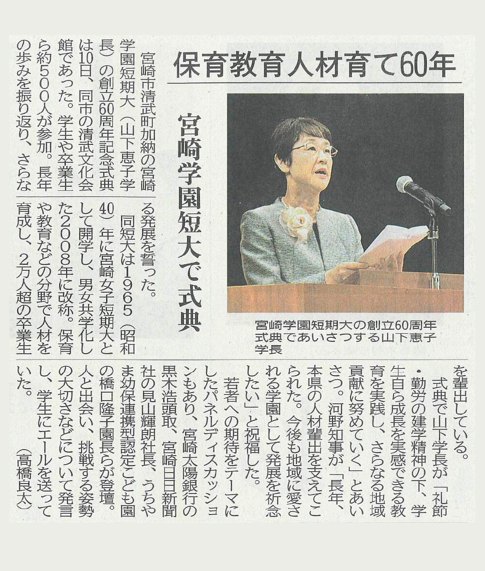 60周年記念式典が宮崎日日新聞に掲載されました。