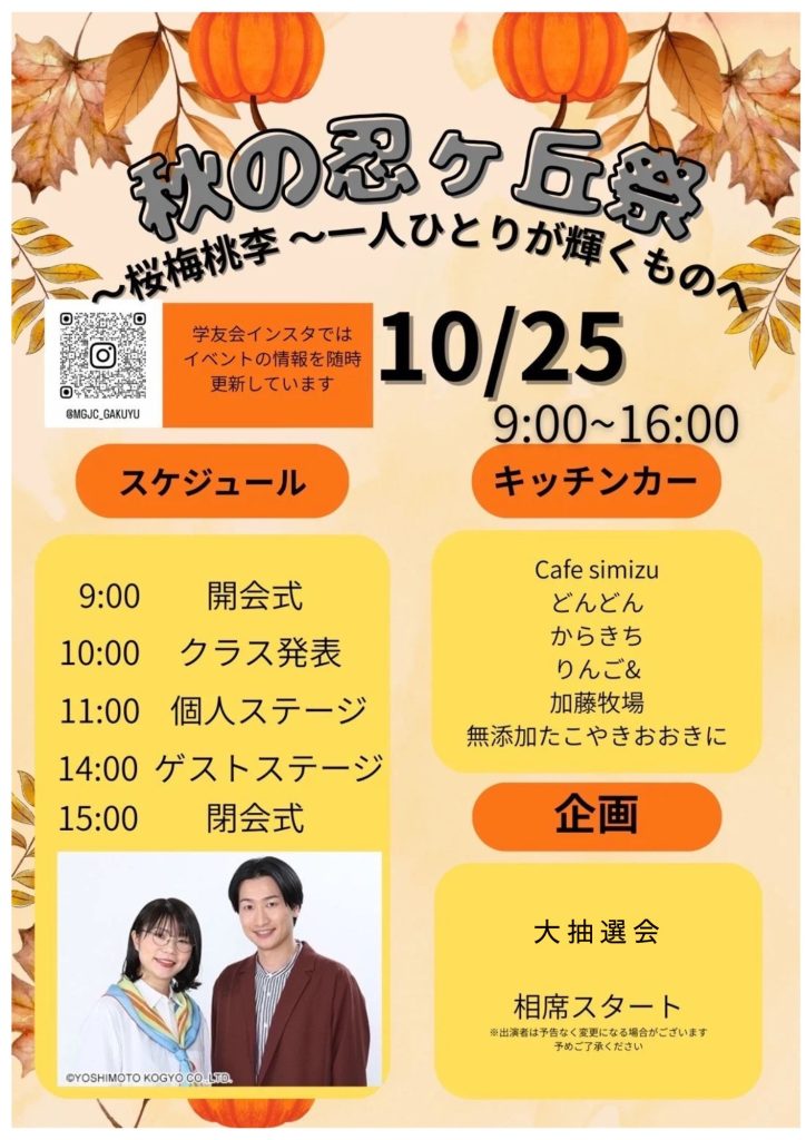 ・ 「秋の忍ヶ丘祭」の詳しい内容は学友会のInstagramをご覧ください♪