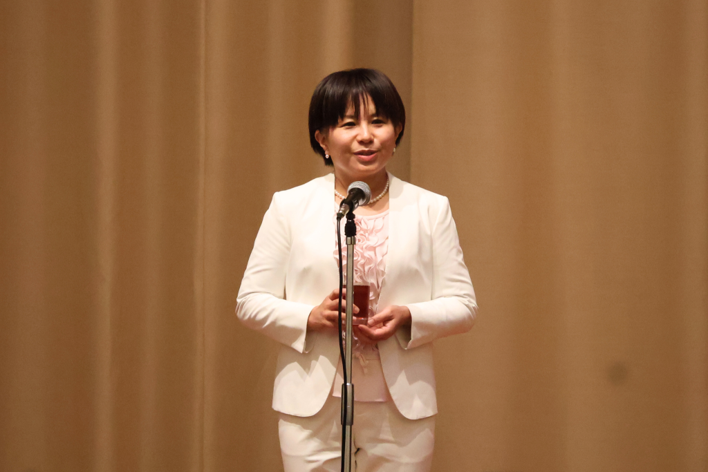 からご祝辞をいただき、その後、本学同窓会しのぶ会会長 廣池 直美 様の乾杯のご発声で会が和やかに開宴しました。
