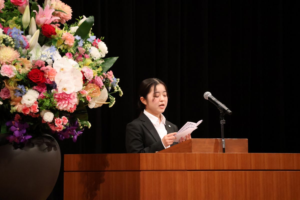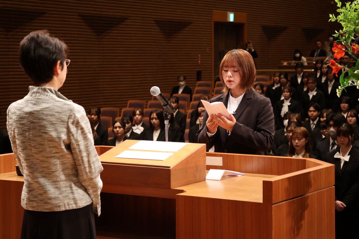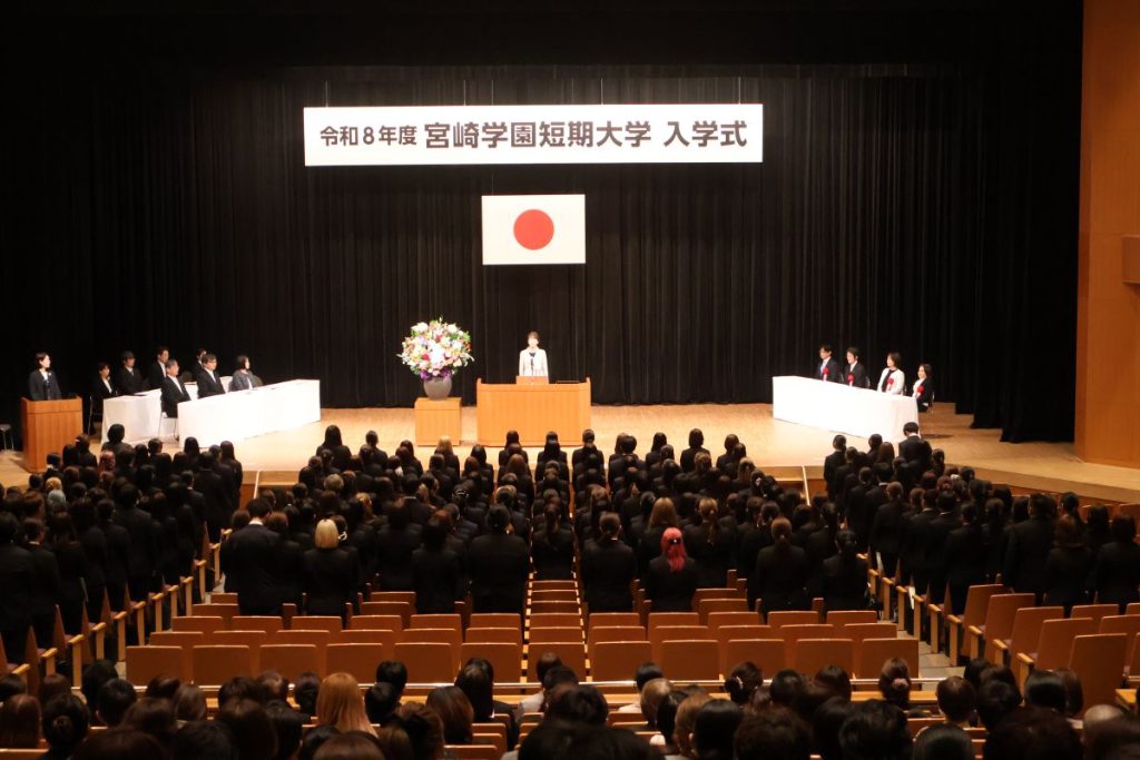 令和8年度 入学式を挙行しました 2026.04.08 イベント 令和8年4月7日(火)、清武文化会館にて入学式を挙行しました。 新入生代表宣誓は、保育科の岡田 華音さん(宮崎北高校出身) 在学生代表歓迎のことばは、学友会会長の鈴木 光咲さんが新入生に向けてメッセージを送りました。 新入生代表宣誓 保育科:岡田 華音さん(宮崎北高校出身) 在学生代表歓迎のことば 学友会会長:鈴木 光咲さん 新入生の皆さん、ご入学おめでとうございます。本学教職員一同心より皆さんを歓迎します。 一覧へ戻る